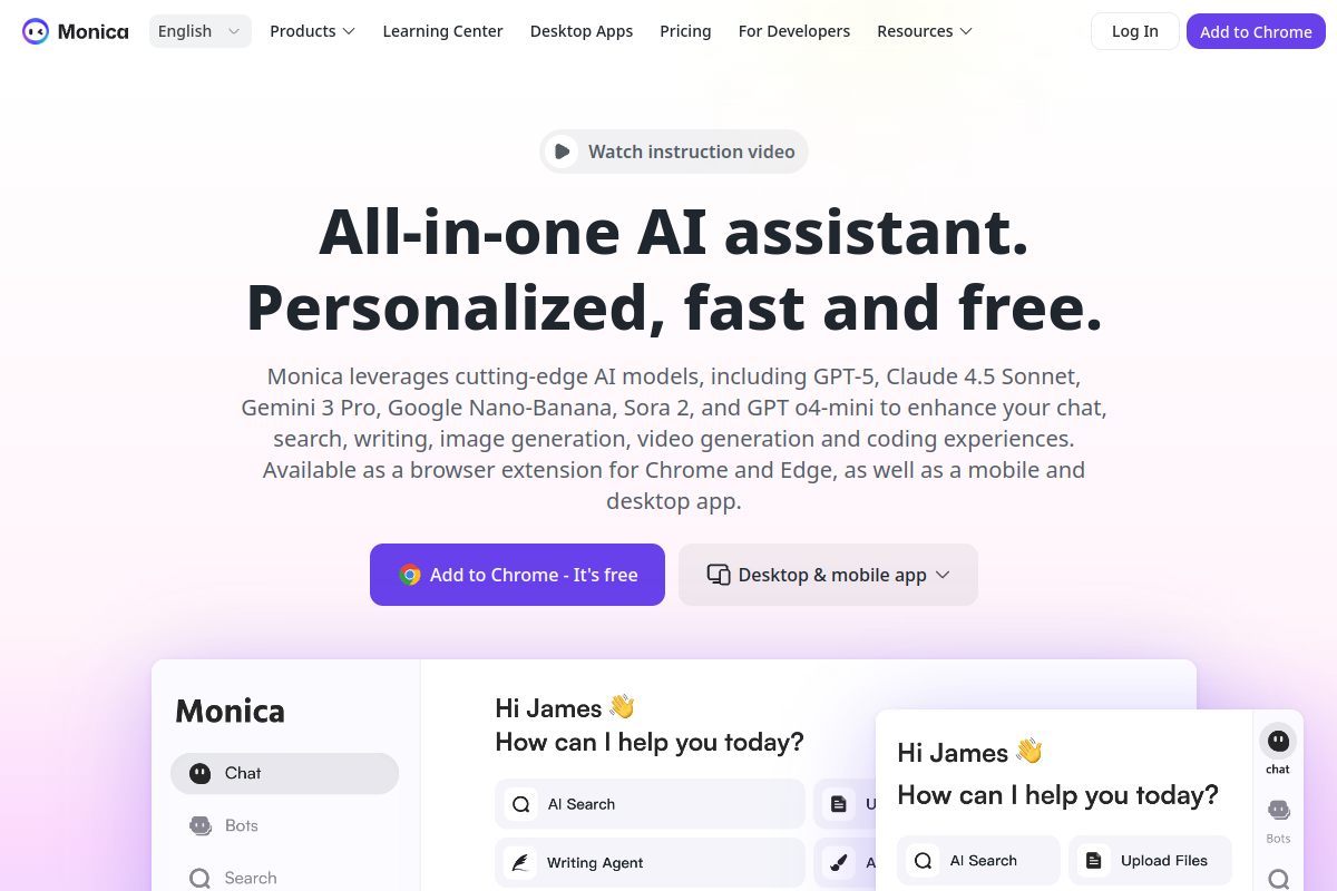 Monica AI è un'estensione del browser assistente AI tutto in uno alimentata da GPT-4 e Claude. Chatta con l'AI, riassumi pagine web, traduci contenuti e genera testo direttamente nel tuo browser, semplificando il tuo flusso di lavoro online.