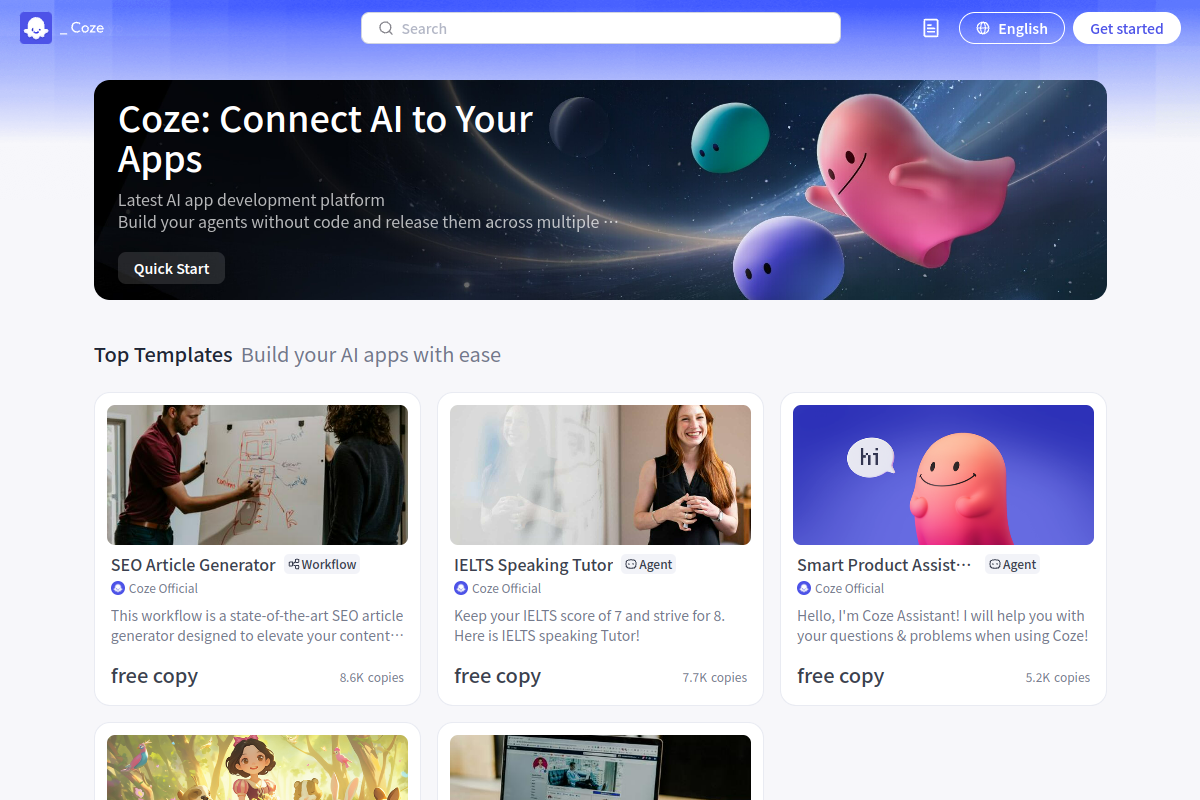 Coze는 사용자 정의 지식 기반과 워크플로우를 갖춘 AI 챗봇 및 에이전트를 구축하기 위한 노코드 플랫폼입니다. 인기 있는 메시징 플랫폼과 통합하고, 플러그인을 추가하며, 단 한 줄의 코드도 작성하지 않고 지능형 어시스턴트를 배포하세요.