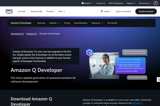 Amazon CodeWhisperer is an AI coding companion that generates code suggestions in real-time. Supports multiple languages and integrates with popular IDEs. Free for individuals.